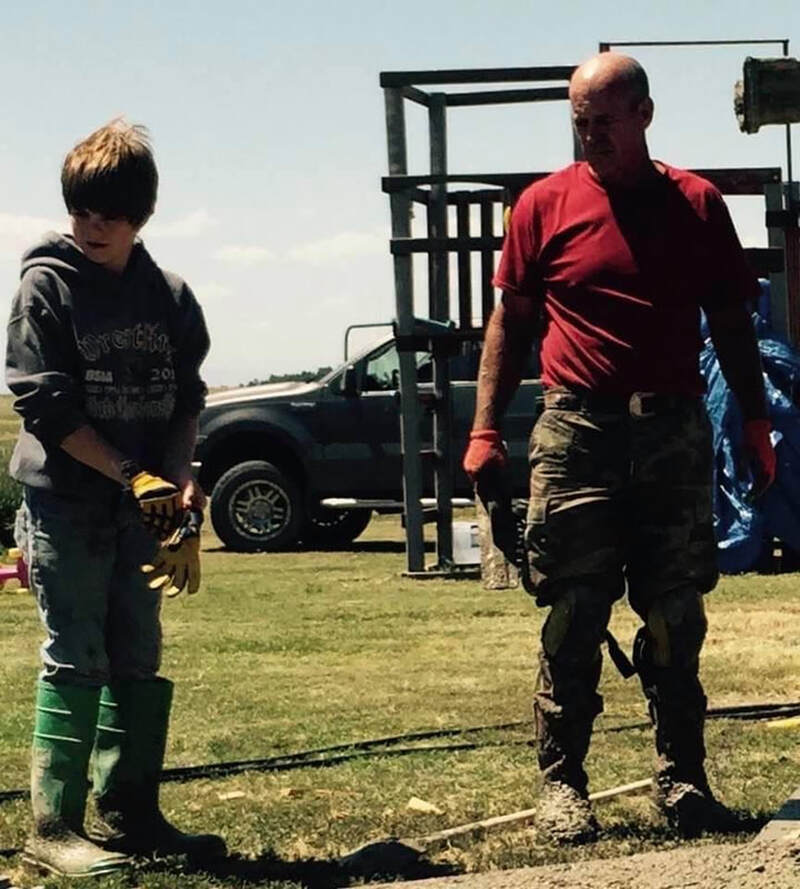 Jesse, age 11, and Jeff Sr. laying down a slab!